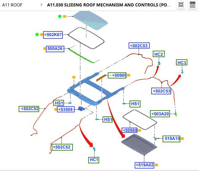 Phần: A11.030 SLIDING ROOF MECHANISM AND CONTROLS (POWER TILT/SLIDE SUN ROOF)